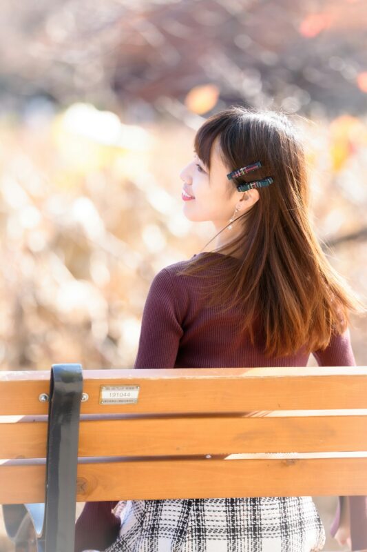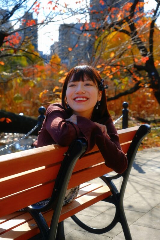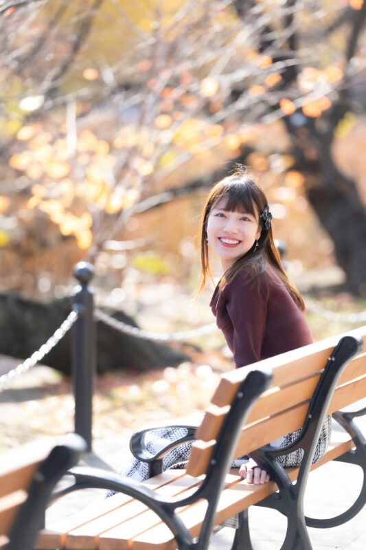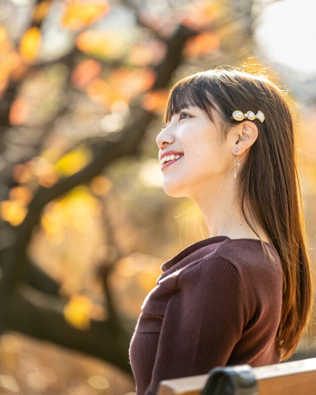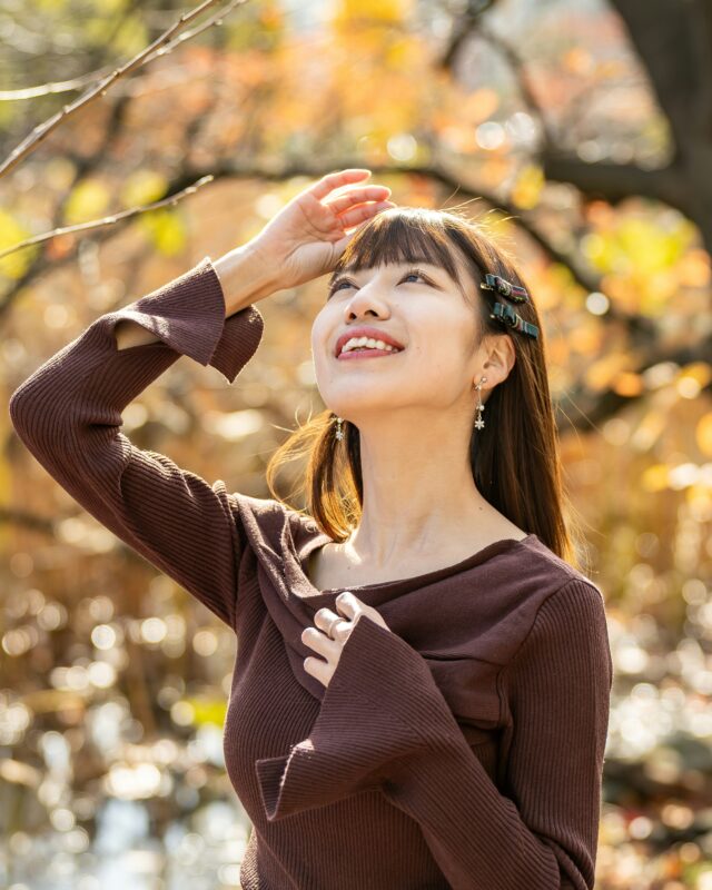 紅葉が進んだ鮮やかな景色の中での撮影は、まさに秋らしさ満点。