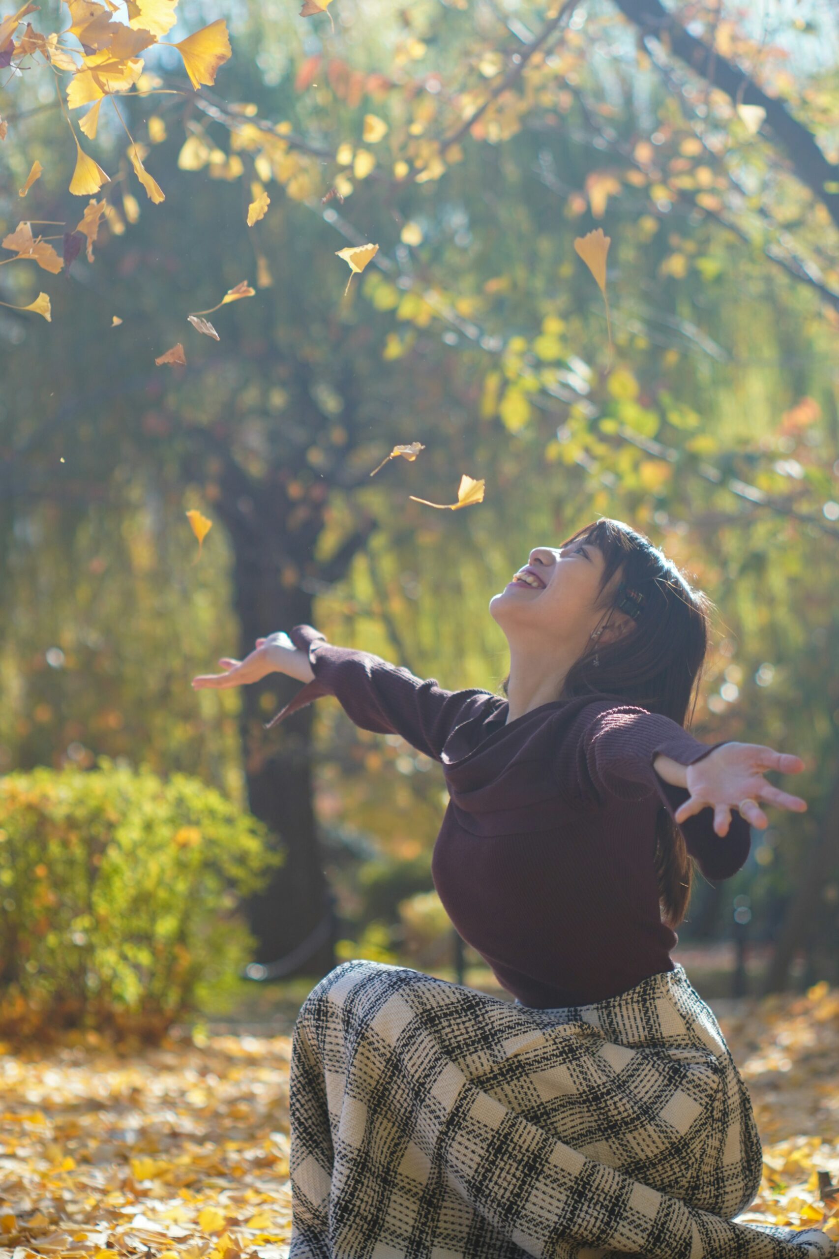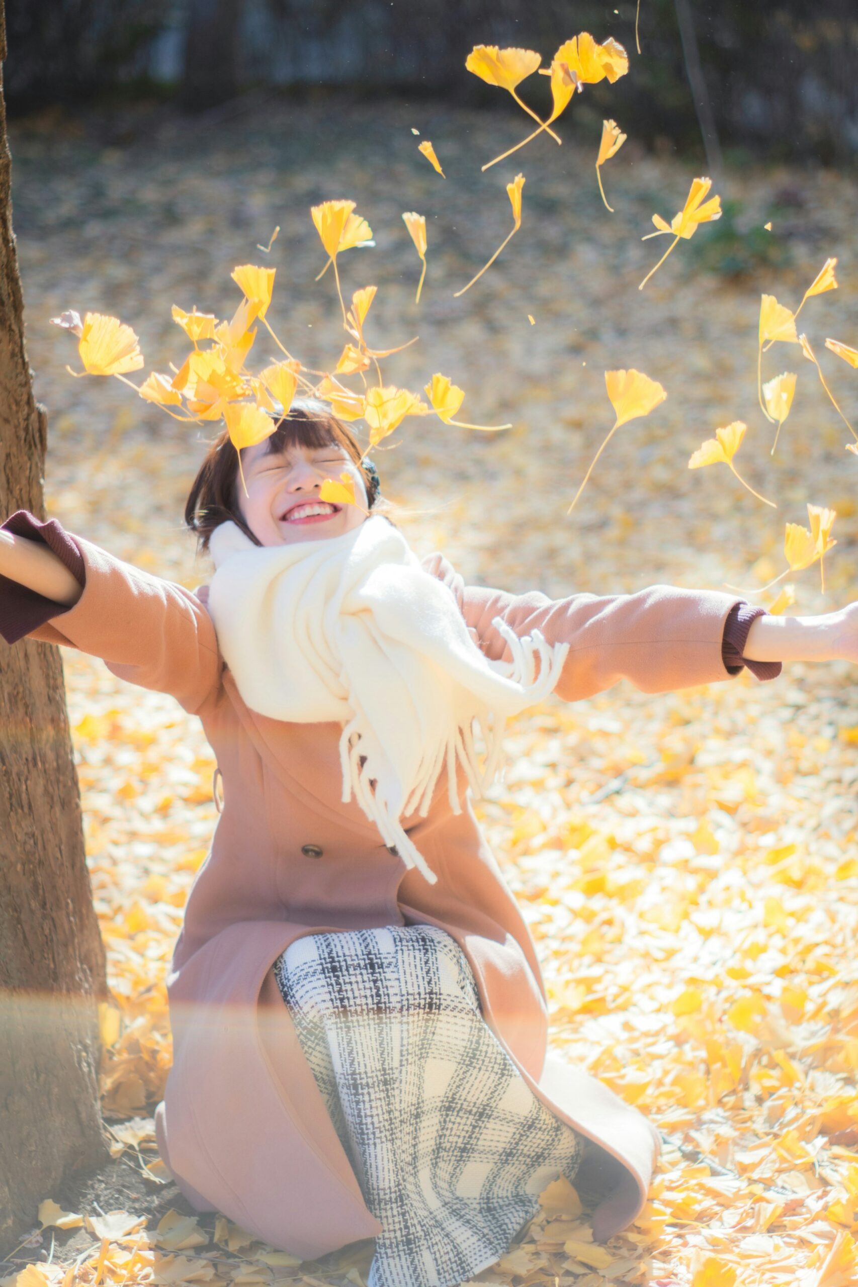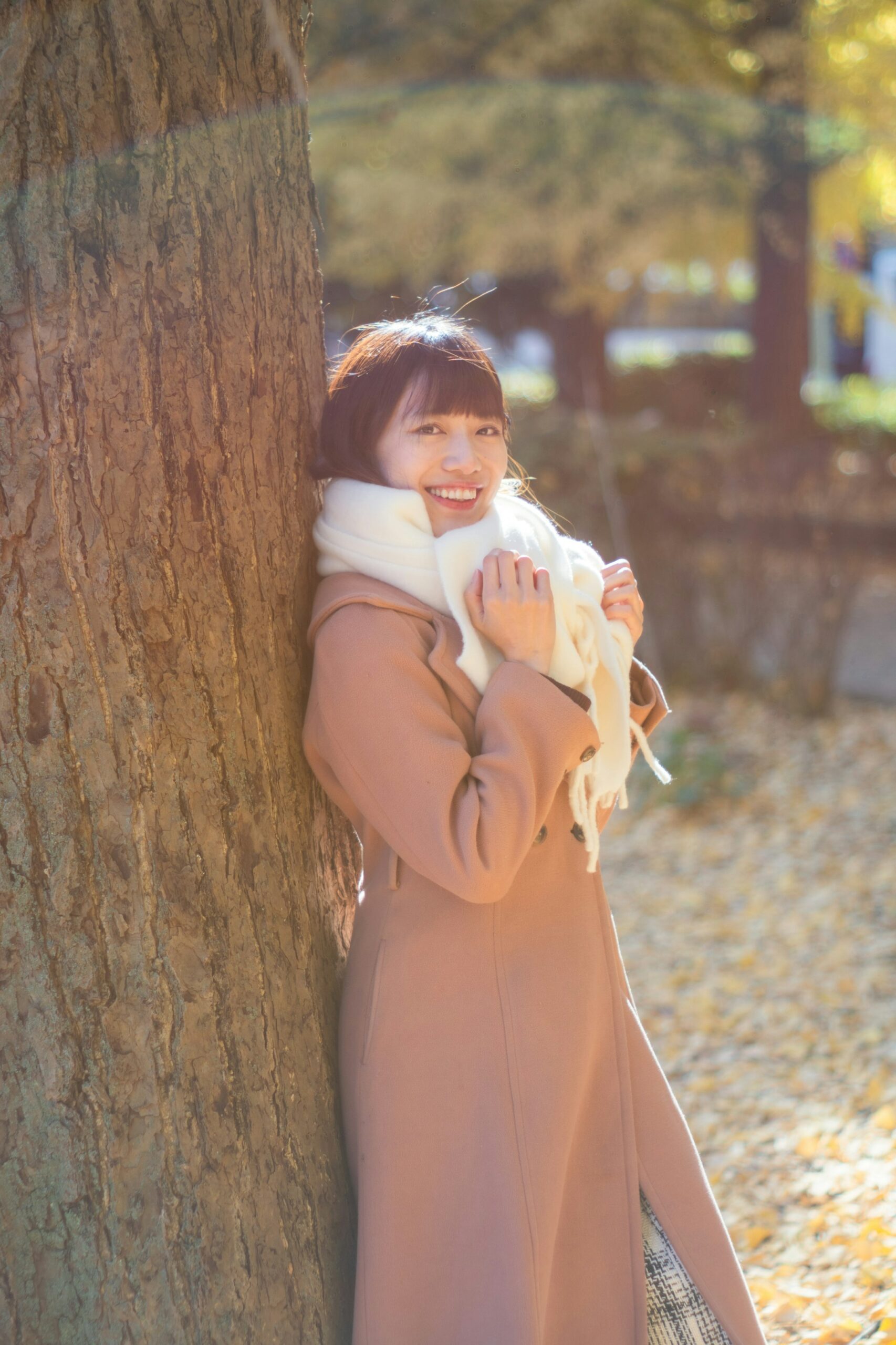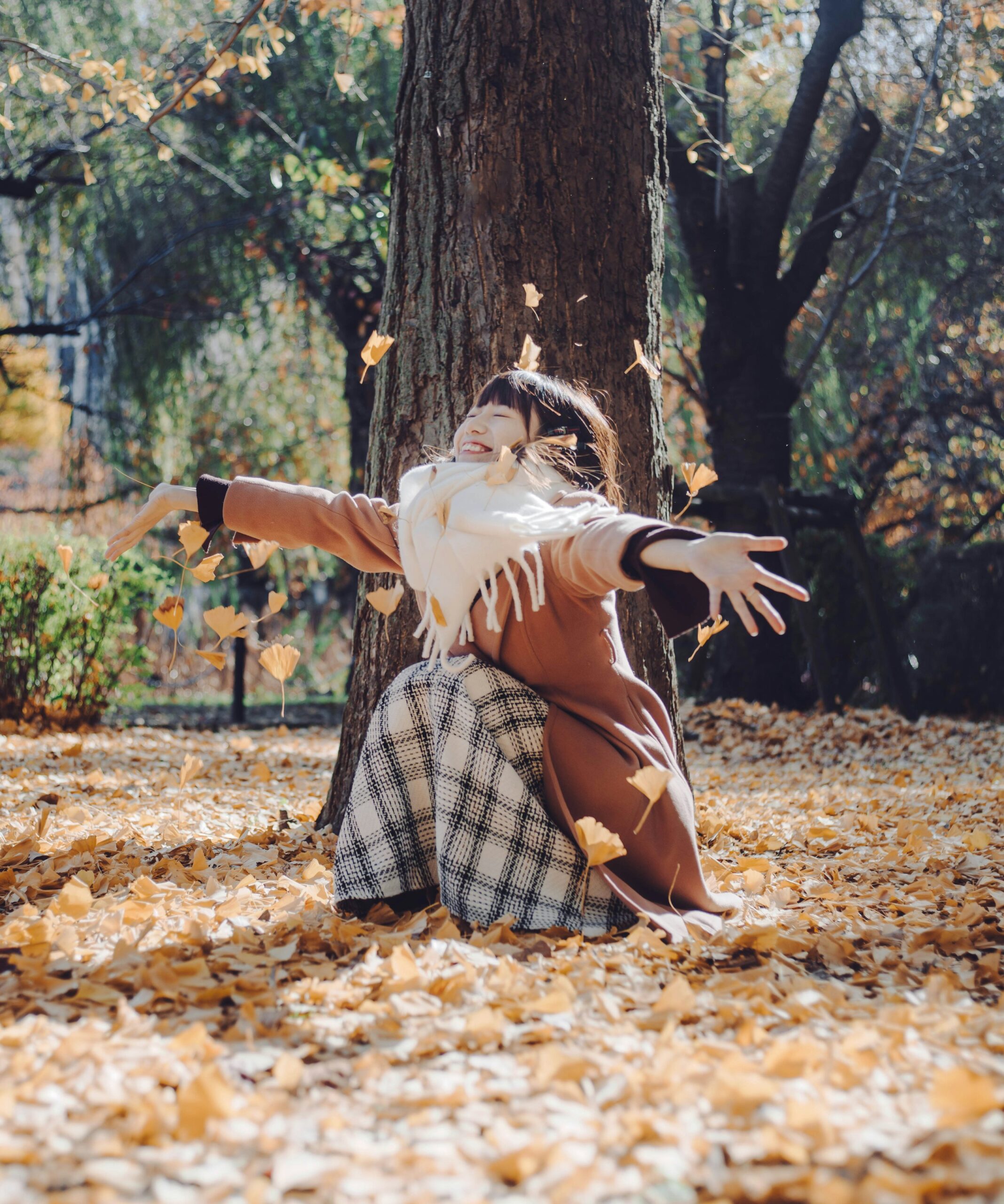 前半の撮影場所は 黄色い葉が地面に敷き詰められたイチョウの木の下 に決定。