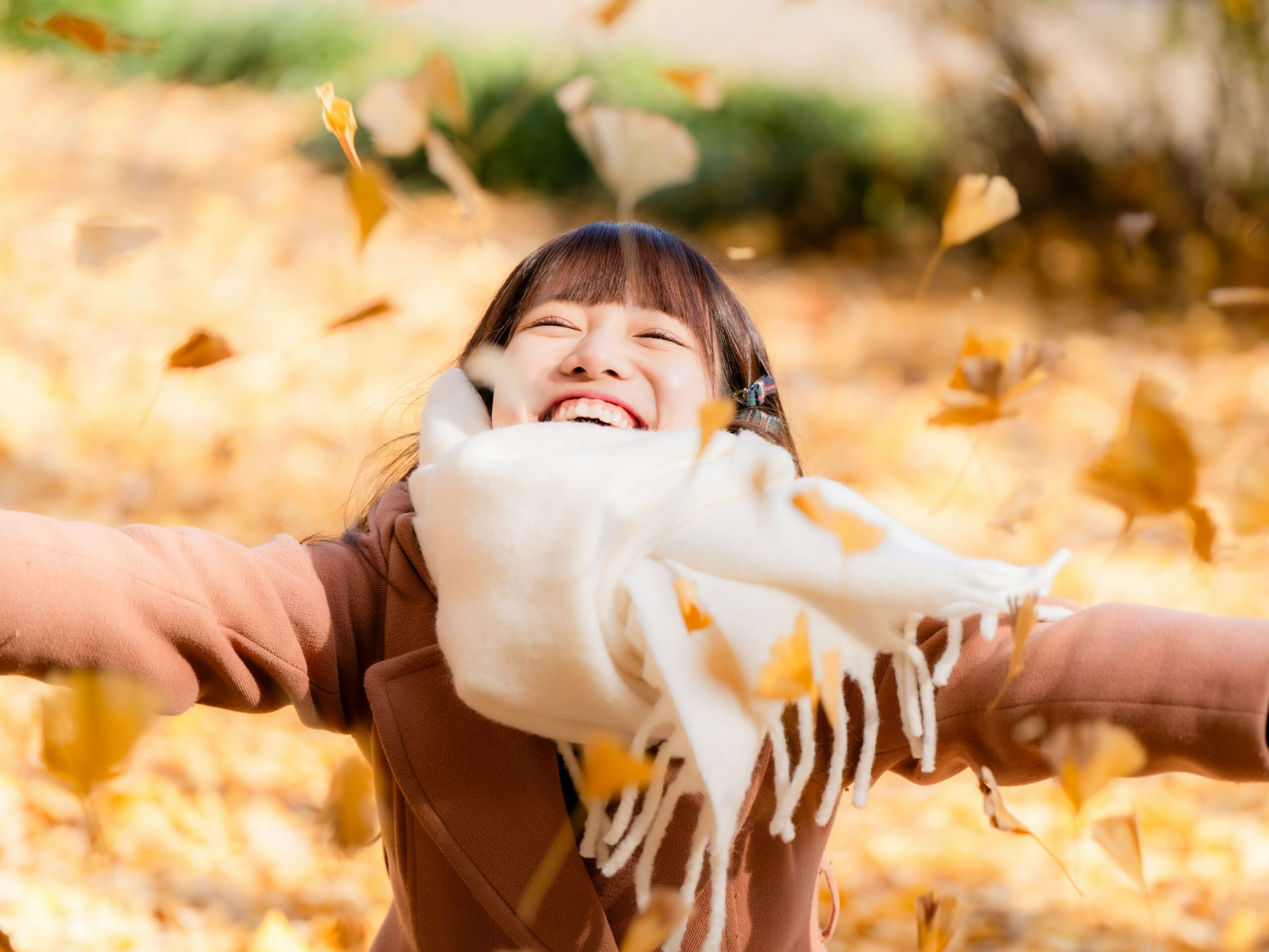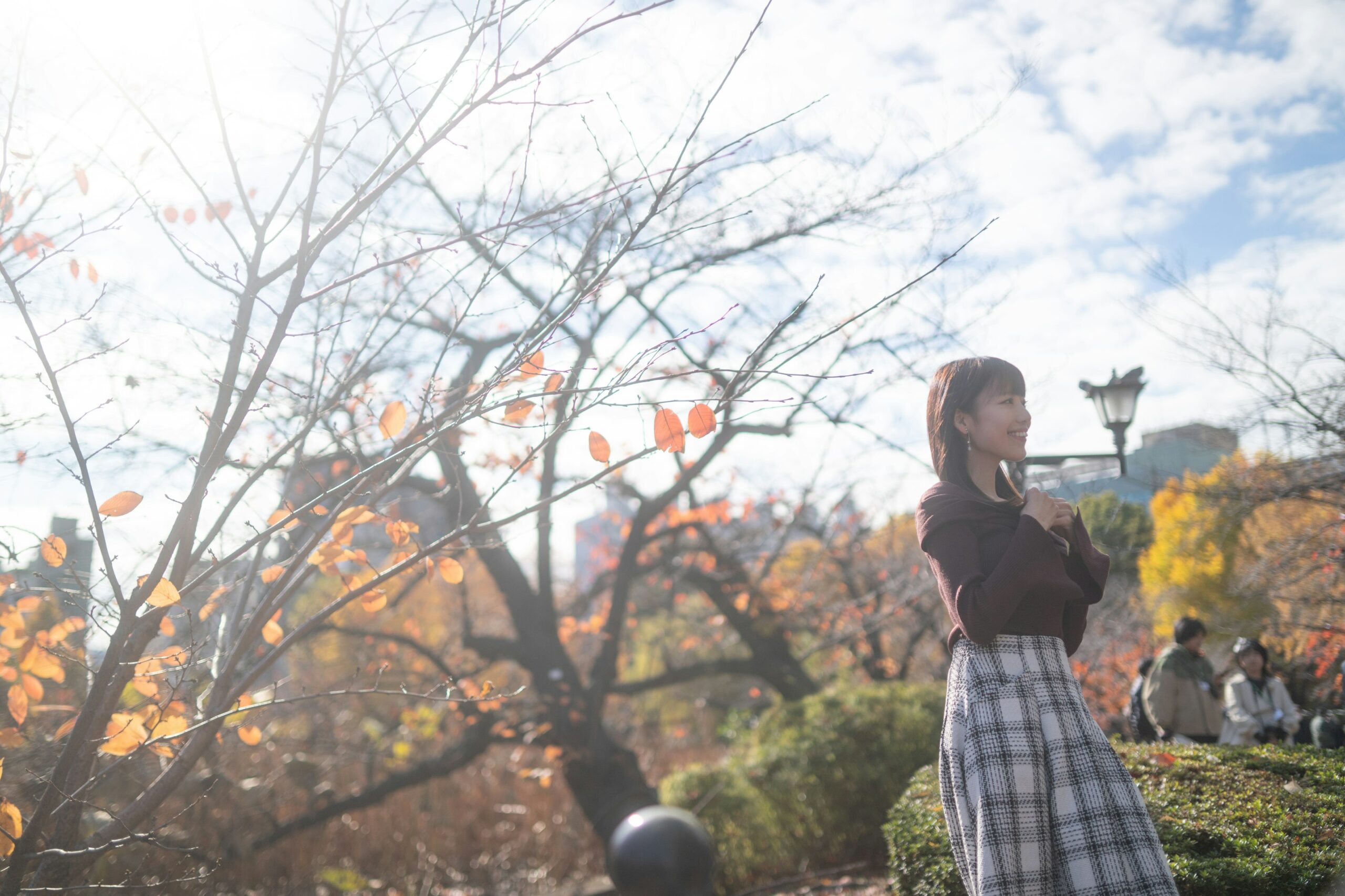 紅葉が進んだ鮮やかな景色の中での撮影は、まさに秋らしさ満点。
