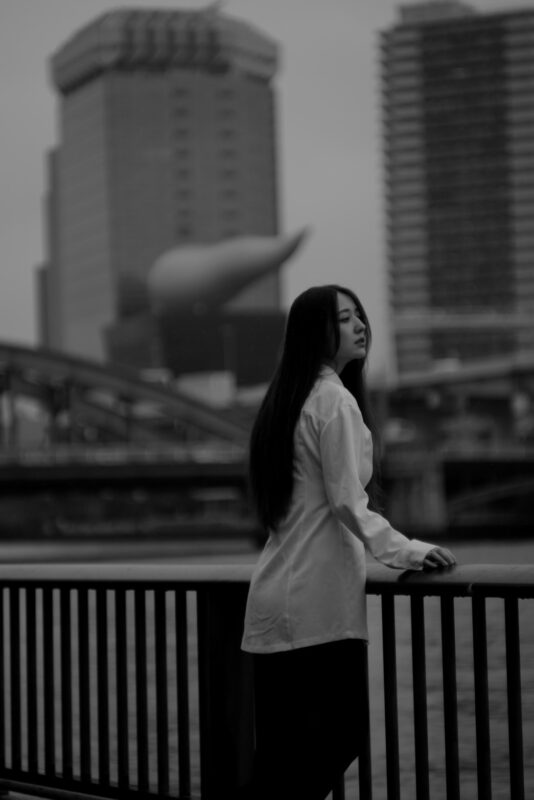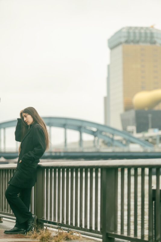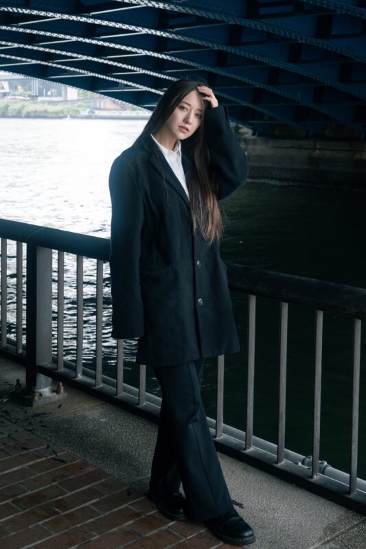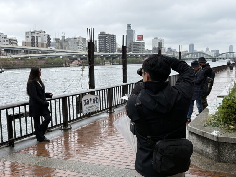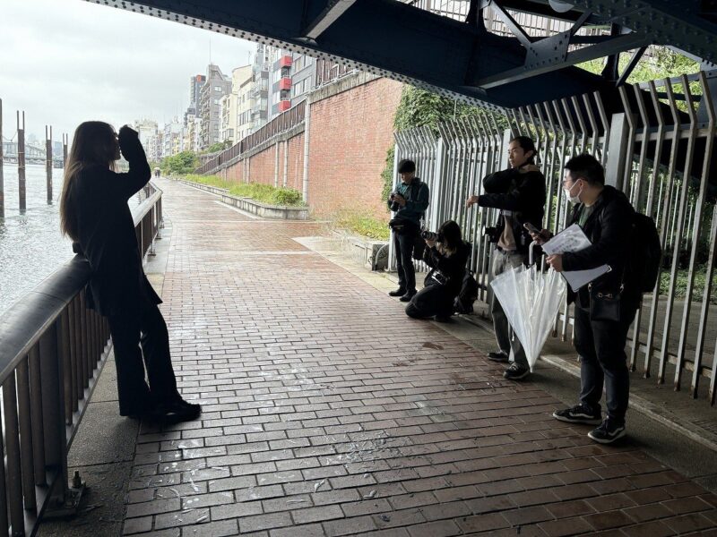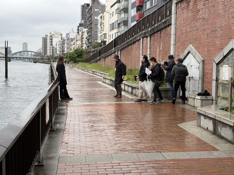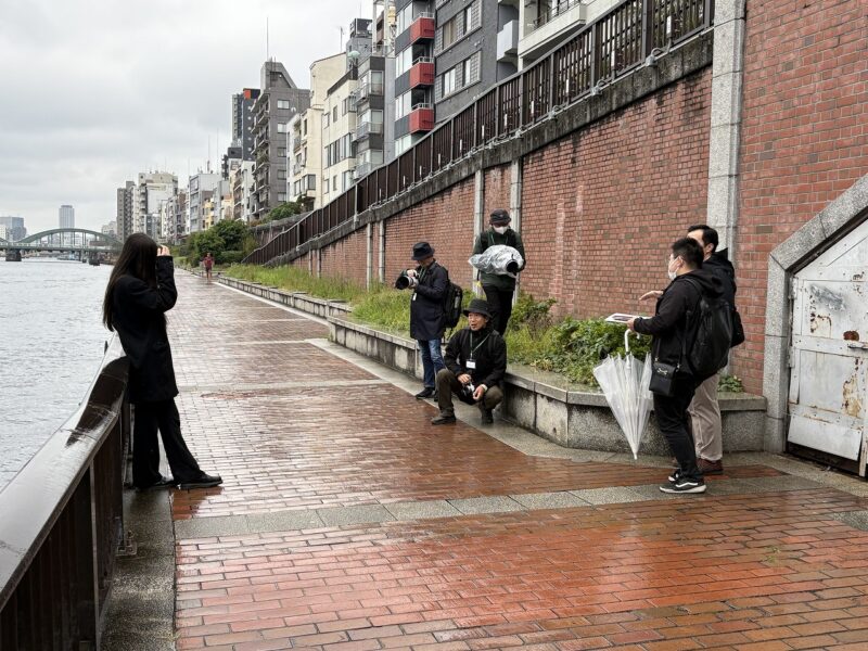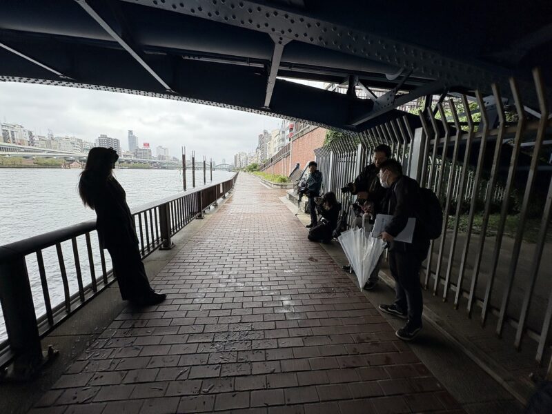 当初は隅田川沿いでの撮影を予定していましたが、途中で雨が強まったため、橋の下へ移動。