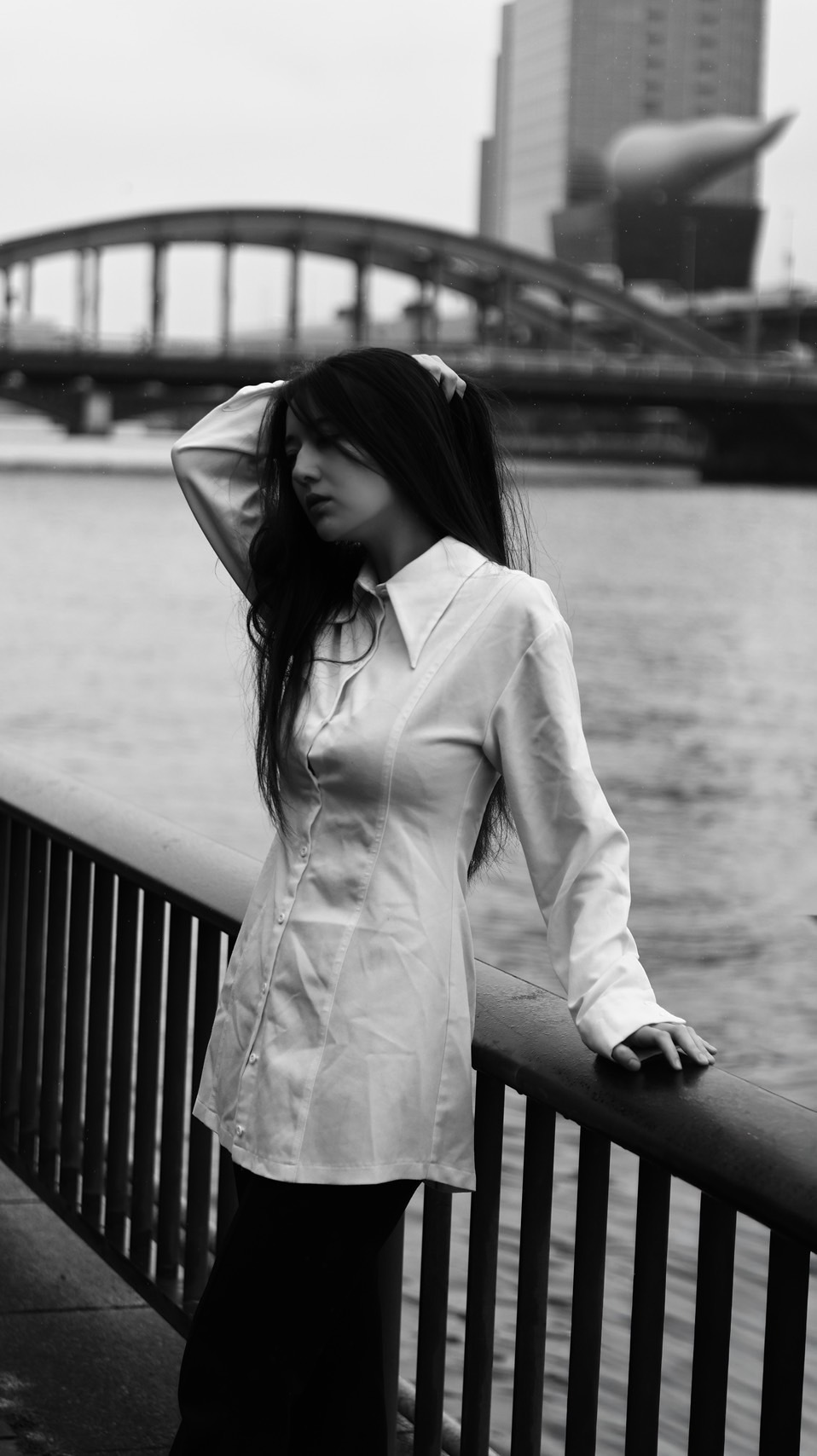 あいにくの雨となりましたが、13名の参加者とモデル・木村ユリヤさんと共に、しっとりとした隅田川の風景を舞台に撮影を楽しみました。