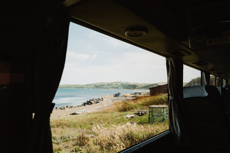 まずは礼文島から。高山植物が標高の低いところにも生えている珍しい島のようなので、見る景色が日本離れしていて、まるで海外の景色を見ているようでした。バスが2階建だったので眺めが良く、自分が座った席が階段付近だったので窓が大きめで写真が撮りやすかったです。窓が暖色系だったので昼間でも雰囲気のある写真になりました。緑とオレンジ、黄色系の色の組み合わせが個人的に好きです。2枚目もなかなか普段見れないような景色だったのですすきをぼかしつつ撮影しました。