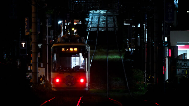 まずはこの写真、西早稲田周辺を進む路面電車をカーブの所から400mmで捕らえてみました。ここで気づいたのですが、さすがZ機のフルサイズ、iso8000で撮影しているのにもかかわらず、黒の部分が特にノイズがほとんど出ていません。