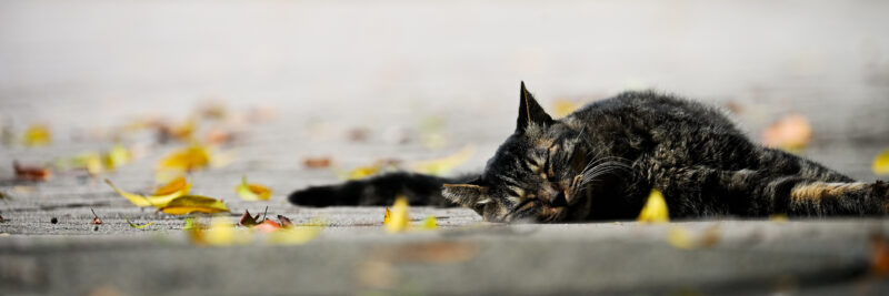 また一方、こちらは私の大学の癒しの象徴、猫のビターくんが寝ている様子を3:1という大胆なアス比でトリミングした写真です。さすがフルサイズ、トリミング耐性も非常に高く、毛並みの繊細さやボケ感がしっかりと残っています。
