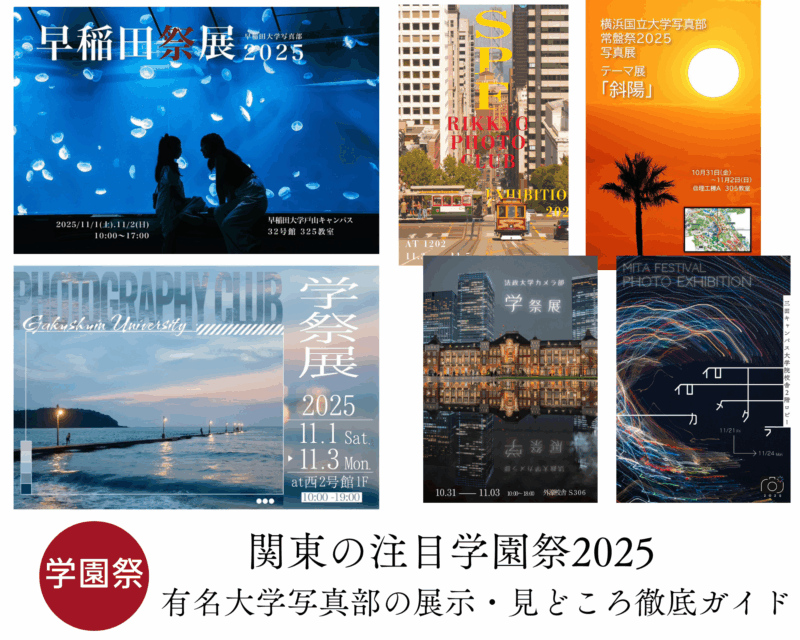 2025年の関東の学園祭では、各大学の写真部がそれぞれの個性を活かした魅力的な展示が行われます。早稲田大学の圧倒的な規模感、慶應義塾大学の歴史と伝統、法政大学のフィナーレ、立教大学のクリエイティブな活動、学習院大学の写真展とじゃがバター店、そして横浜国立大学のアールイーカメラとのコラボ企画のキャプションなど、見どころは尽きません。