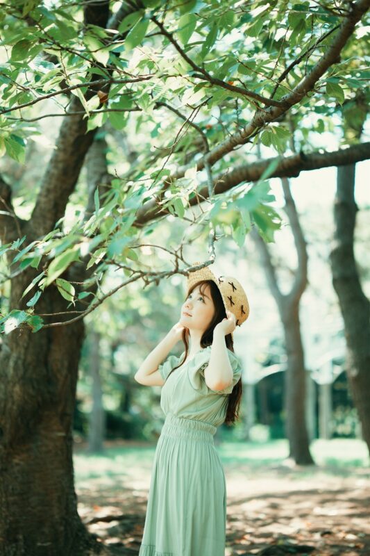 無理に演じるのではなく、その場の風景や光に溶け込むようなポージングを大切にしています。