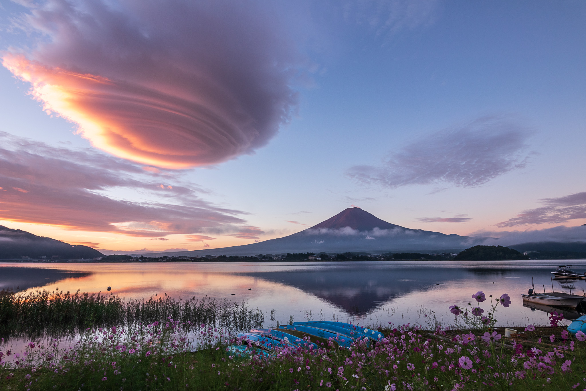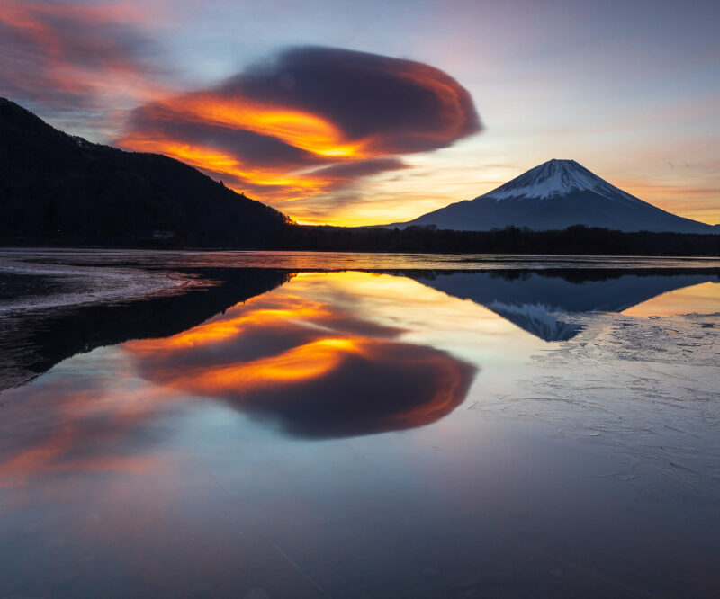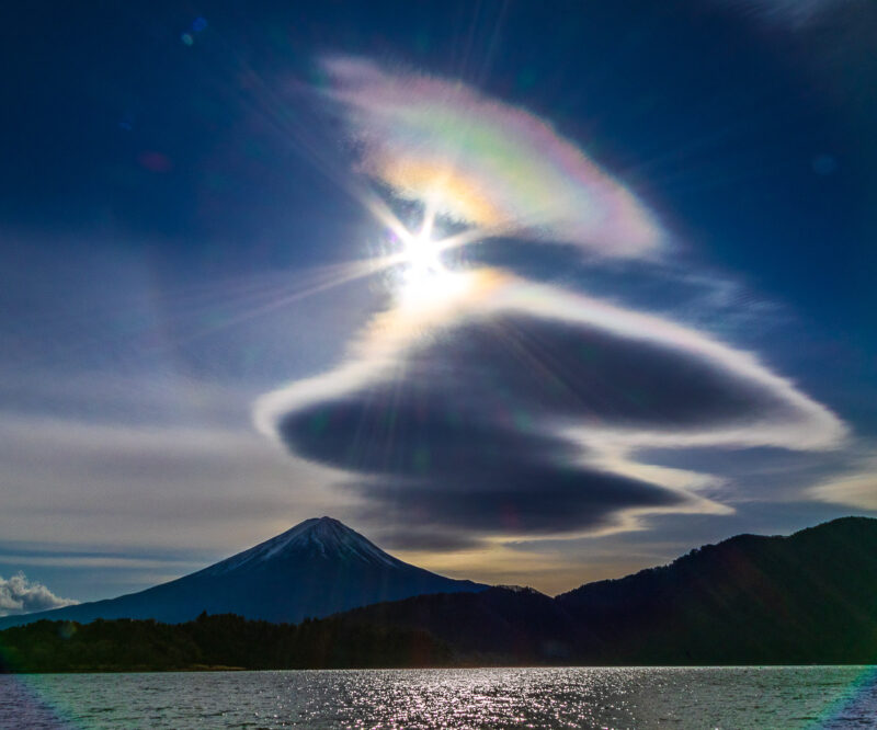 普段から河口湖周辺で生活しているHarumiさんですが、素晴らしい笠雲が現れた瞬間、昼休みのわずかな時間でもカメラを持って湖畔へ向かいました。