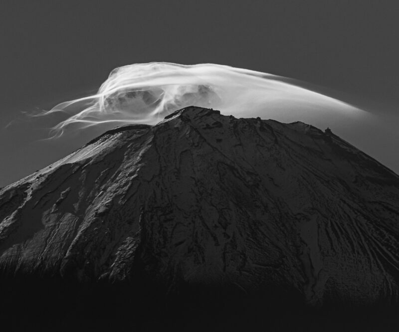 20年以上にわたり、変わらない富士山と移ろいゆく季節、そしてその日ごとに表情を変える雲の美しさを写真に収めています。