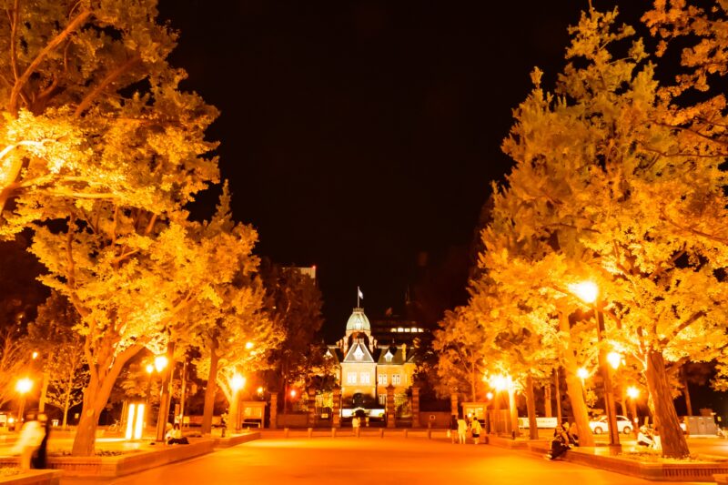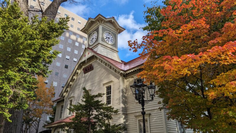 白い外壁と紅葉のコントラストが美しい札幌のシンボルです。