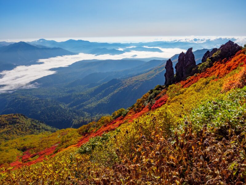紅葉に加え、ススキや雲海など、秋ならではの雄大な自然を満喫できます。