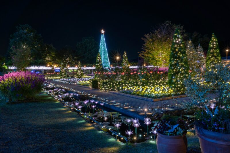 秋のアメジストセージや秋バラが見頃です。冬のイルミネーションも全国的に有名です。