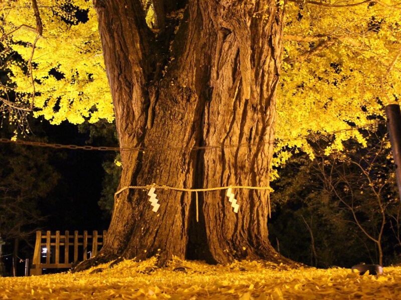 樹齢800年を超える大イチョウが境内を黄金色に染め上げます。