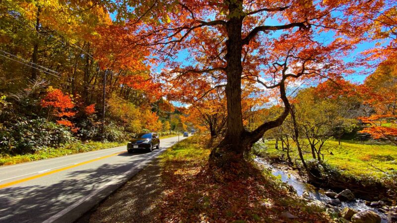 標高差があるため長く紅葉を楽しめるドライブコースです。