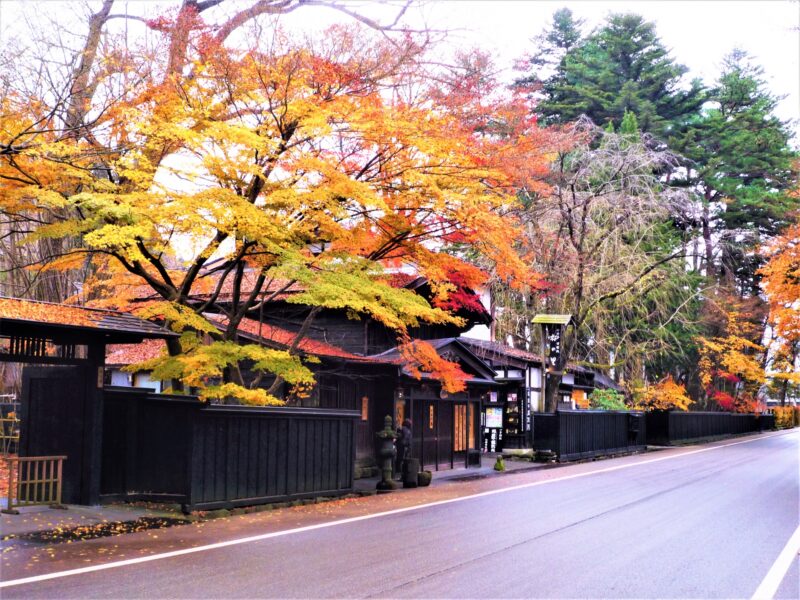 「みちのくの小京都」と呼ばれる角館は、武家屋敷が立ち並ぶ風情ある街並みが魅力です。10月下旬から11月上旬にかけて、武家屋敷を囲む黒板塀にカエデやモミジの紅葉が美しく映えます。日没からのライトアップでは、昼間とは異なる幻想的な表情を見せてくれます。
