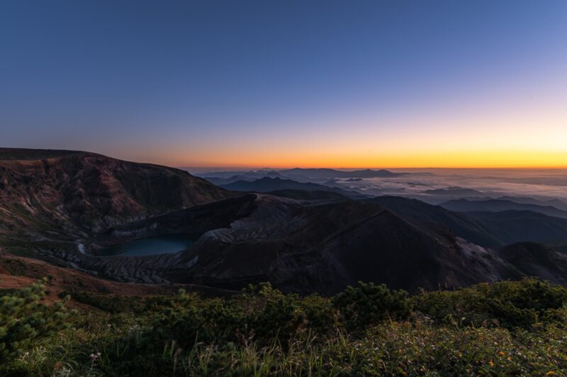 八幡平ドラゴンアイ:八幡平の雪解けシーズン(5月下旬~6月中旬)に見られる奇跡の絶景ですが、11月上旬までは紅葉が楽しめる八幡平として訪れることができます。紅葉の見頃は9月下旬から10月中旬です。