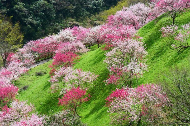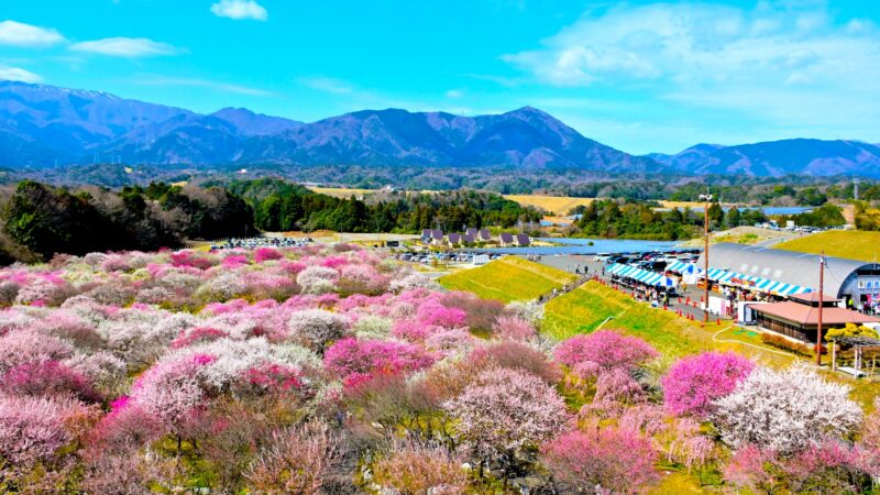 三重県の最北部、いなべ市農業公園内にある梅林公園は、約100種類4,000本の梅が咲き乱れる東海地区最大級の梅園です。2月下旬から3月中旬には梅まつりが開催されます。