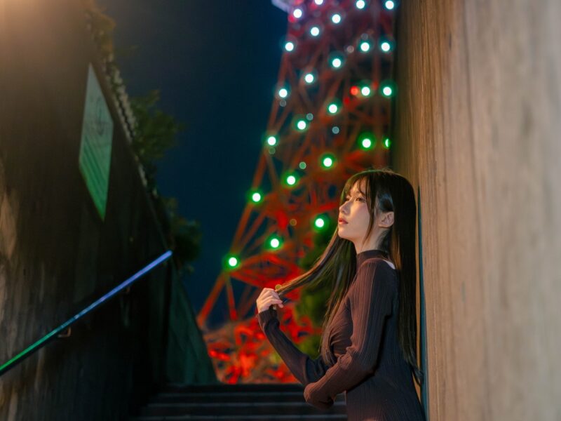 キラキラと輝くネオンに照らされる夜の街は、ポートレートの撮影にぴったりの舞台。光と影のコントラストを活かしたり、カラフルな明かりを取り入れることで、印象的なポートレートに仕上がります。