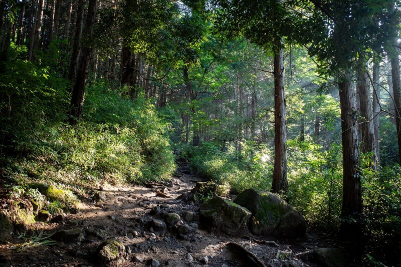超広角を活かし、森の奥へと続く小径を大きなスケール感で写すことができました。登山道の雰囲気や広がりを表現するのに、広角ズームはとても頼れる存在です。
