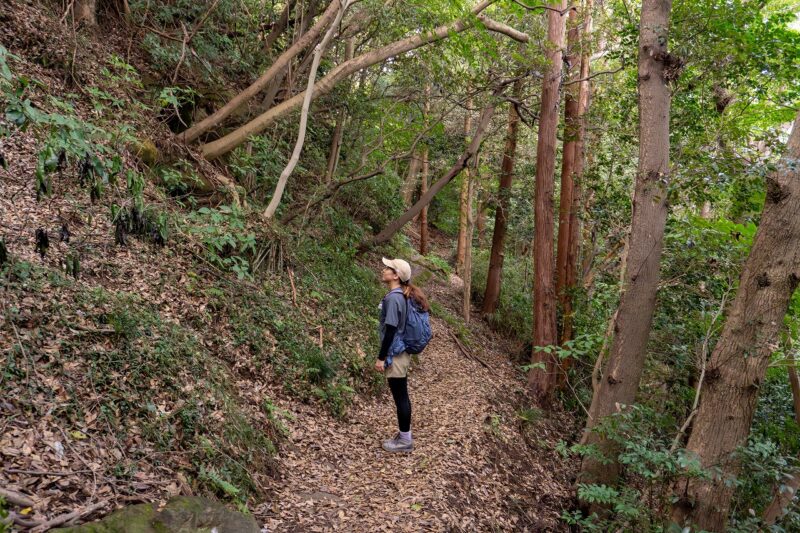 登山道を歩いているとき、ふと見上げた先の木々に惹かれて立ち止まった瞬間を友人が撮ってくれました。森の中は天気が良くなかったこともあってか、思った以上に光が少なかったためISOの数値を上げて撮影。ややノイズが気になりましたが、編集機能でノイズ除去を行うことで雰囲気を保ったまま仕上げることができました。