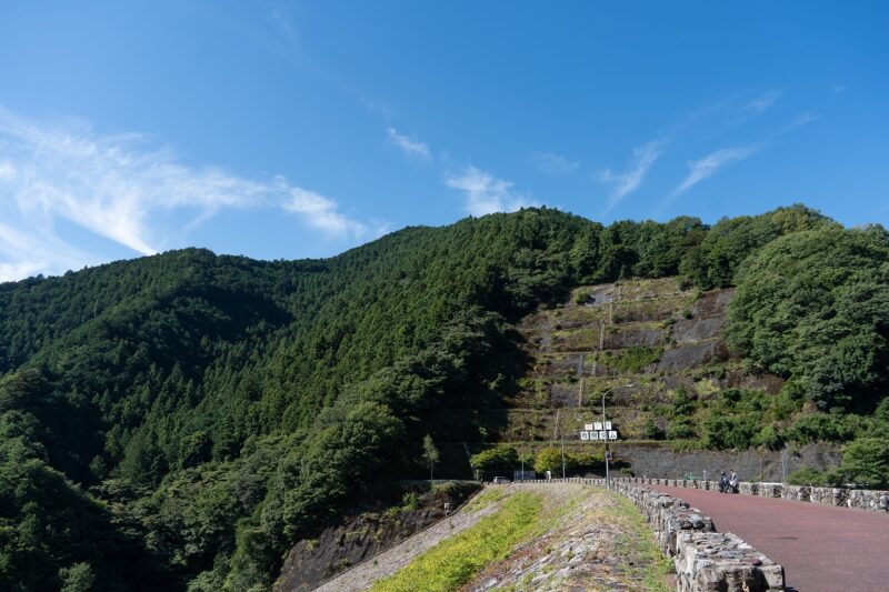 棒ノ嶺・有間ダム付近での一枚。山の深い緑と澄んだ青空のコントラストに惹かれてカメラを構えました。
