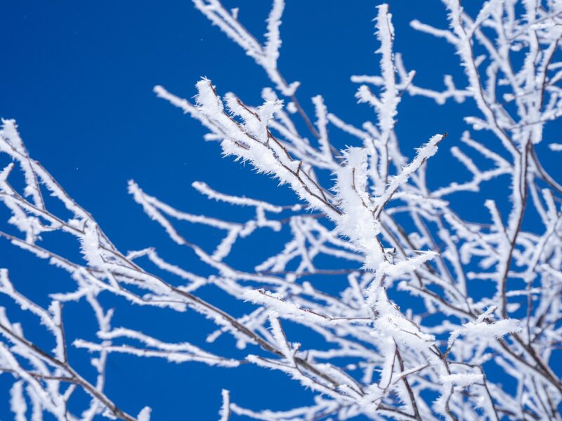 赤城山で出会った霧氷の枝を撮影。青空に映える繊細な氷の結晶を、6100万画素の高解像度センサーが克明に描き出してくれました。細部まで写し込めるからこそ、山での一瞬の美しさを作品として残すことができます。