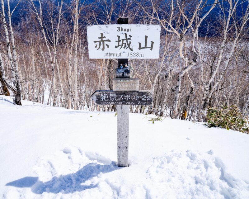 赤城山・黒檜山山頂の標識を、24mmで撮影。真っ白な雪に埋もれた標識は、まさに冬山登山をやり遂げた実感を与えてくれるシーンです。解像度の高さにより、雪の質感や木々の表情まで鮮明に写り込み、その日の達成感を後から振り返る手がかりになります。