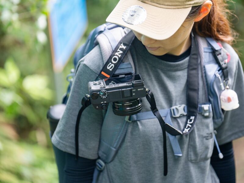 一方で、歩行中にカメラがブラブラして体に当たると痛いのがデメリット。岩場や急登では不安定になりやすいため、斜めがけにしてカメラを横に回し、体にフィットさせるなどの工夫が欠かせません。