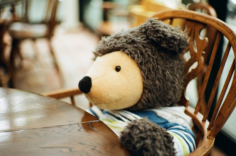 クマさんといっしょにケーキを食べた。妹が人形を椅子に座らせておままごとをしていたのを思い出す。