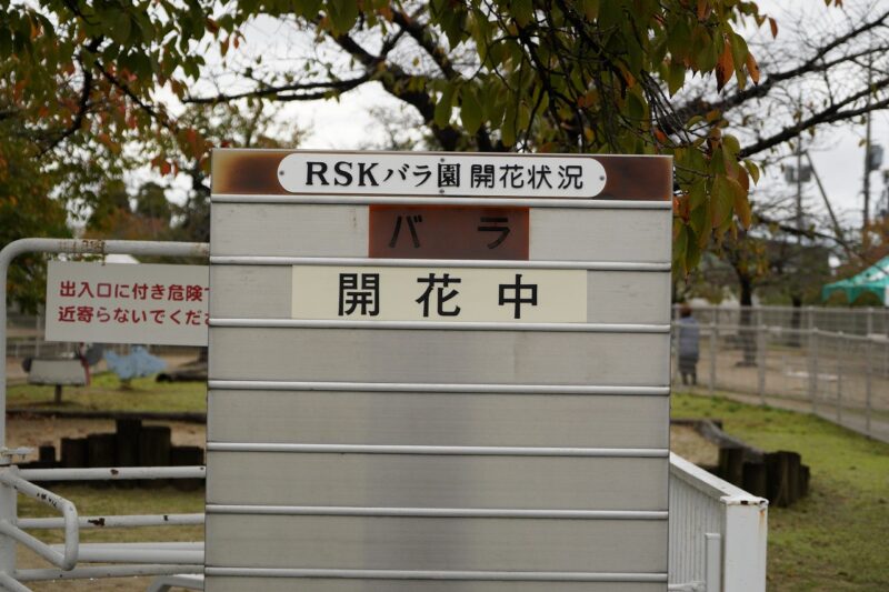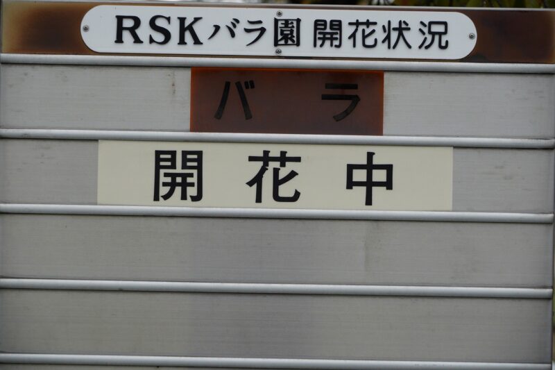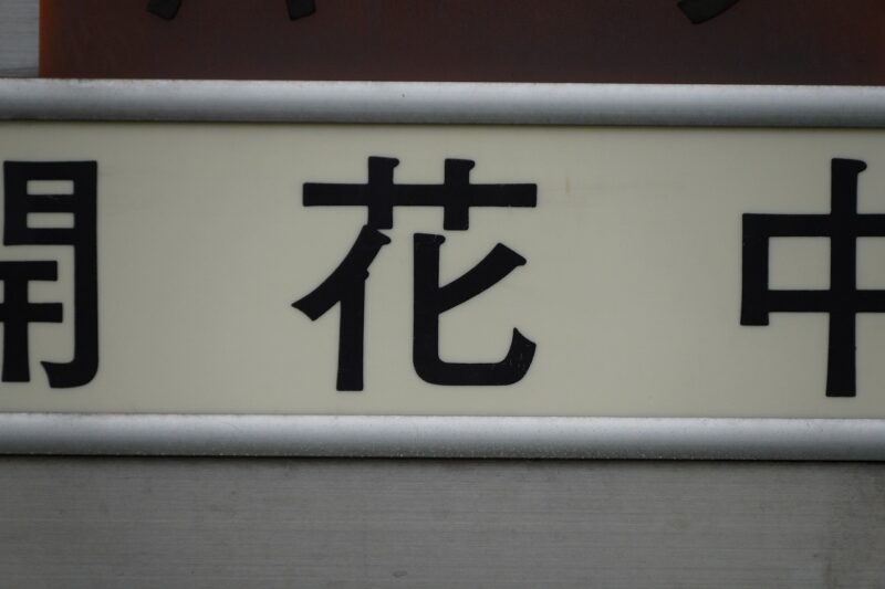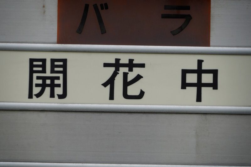 「開花中」と書かれた看板を中心に捉えてズームしてみました。