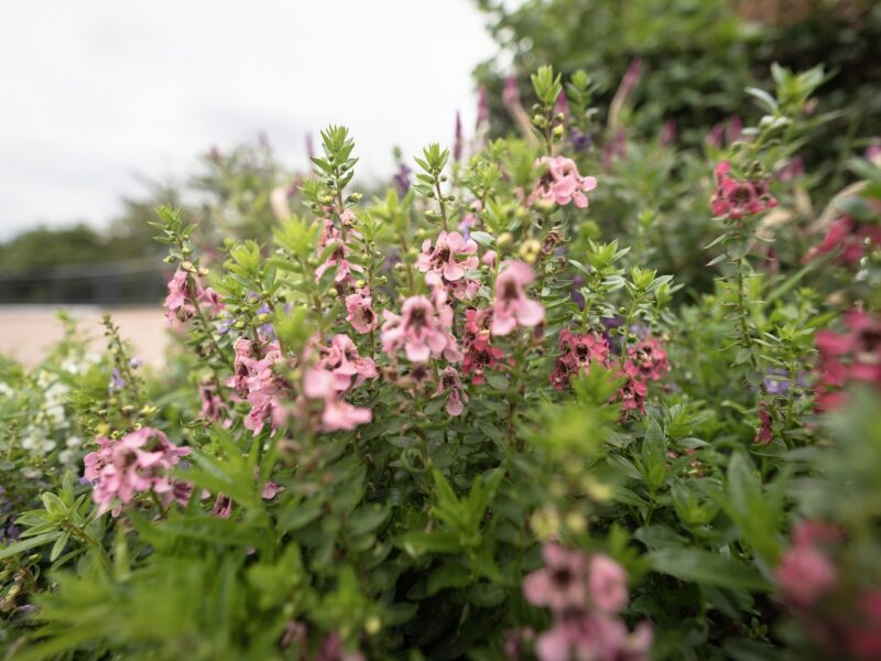 F2.8で近接撮影をすると、被写界深度が非常に浅くなります。前ボケと後ボケを検証したこの作例では、中央に咲くアンゲロニアのピントが外れてしまいました。