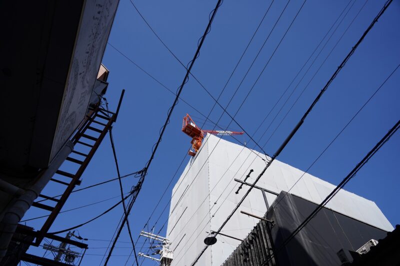 建設中のビルの上にあったクレーンを中心に撮影しました。
