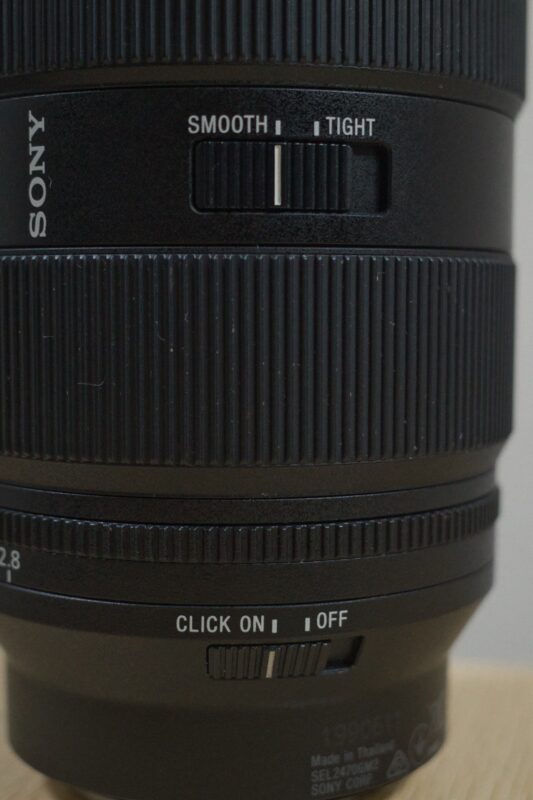 ズーム操作感切り替えスイッチで「SMOOTH」か「TIGHT」を選べるのも特徴。