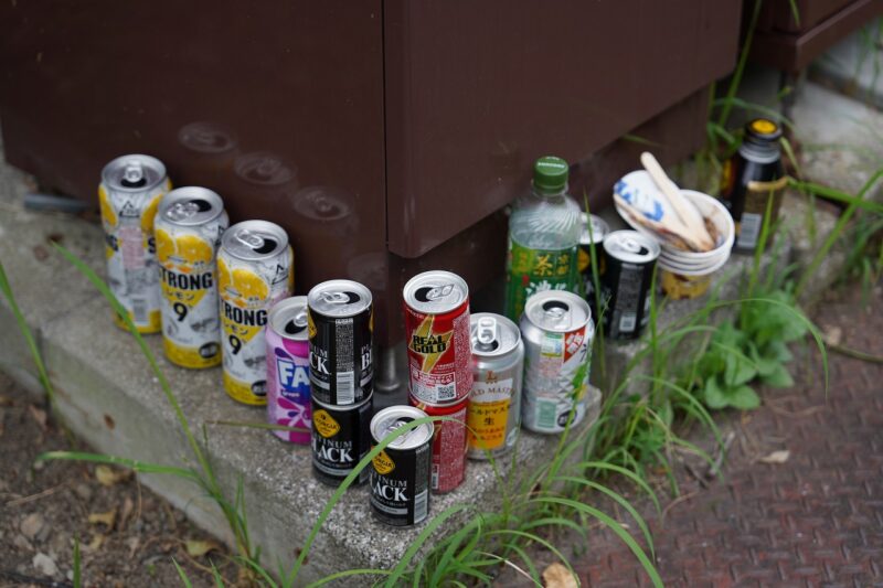 曇天のもとで撮影した自販機のカットでは、金属の質感や黄色、赤・緑の発色が自然かつ正確に再現されています。