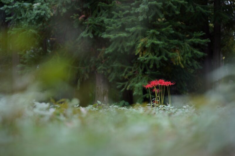 赤い彼岸花が咲いていたので、ぐっとカメラの位置を下げて地面スレスレのところから撮影しました。被写体は小さいですが、AFはとても速く、ピント面はしっかり解像しています。