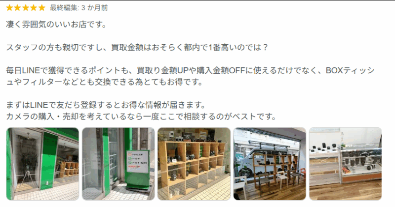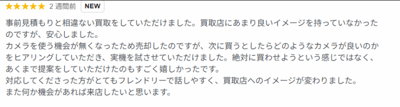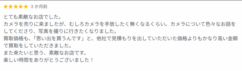 専門性・査定力・対応の丁寧さの3点で群を抜いており、カメラを大切に扱いたい方から強い支持を得ています。