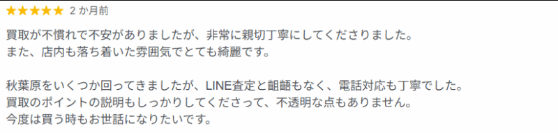 | Googleの口コミ | ★★★☆☆ 3.7 (385) ※秋葉原中古買取センター |