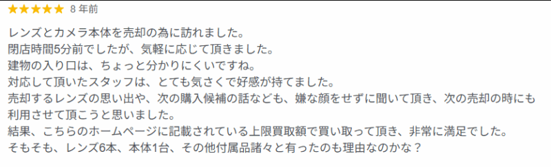 ・状態が悪いレンズでもしっかり価値を見てくれた